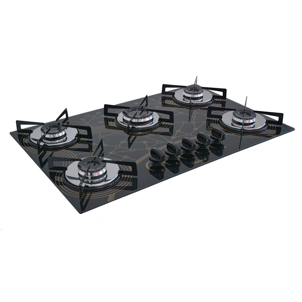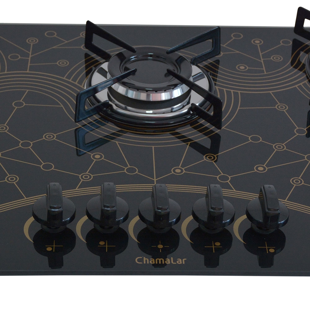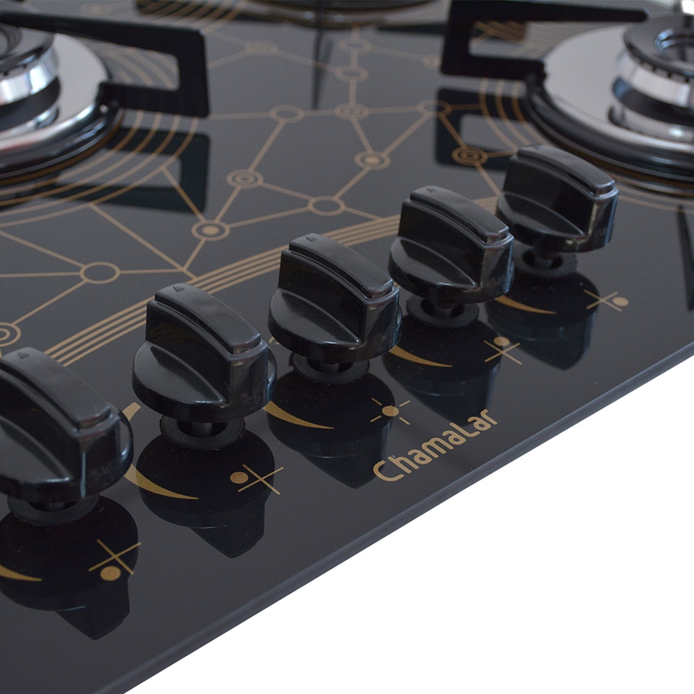 Cooktop 5 Bocas a Gás Chamalar Premium Mesa de Vidro Ultra Chama 133 Mesclado Bivolt