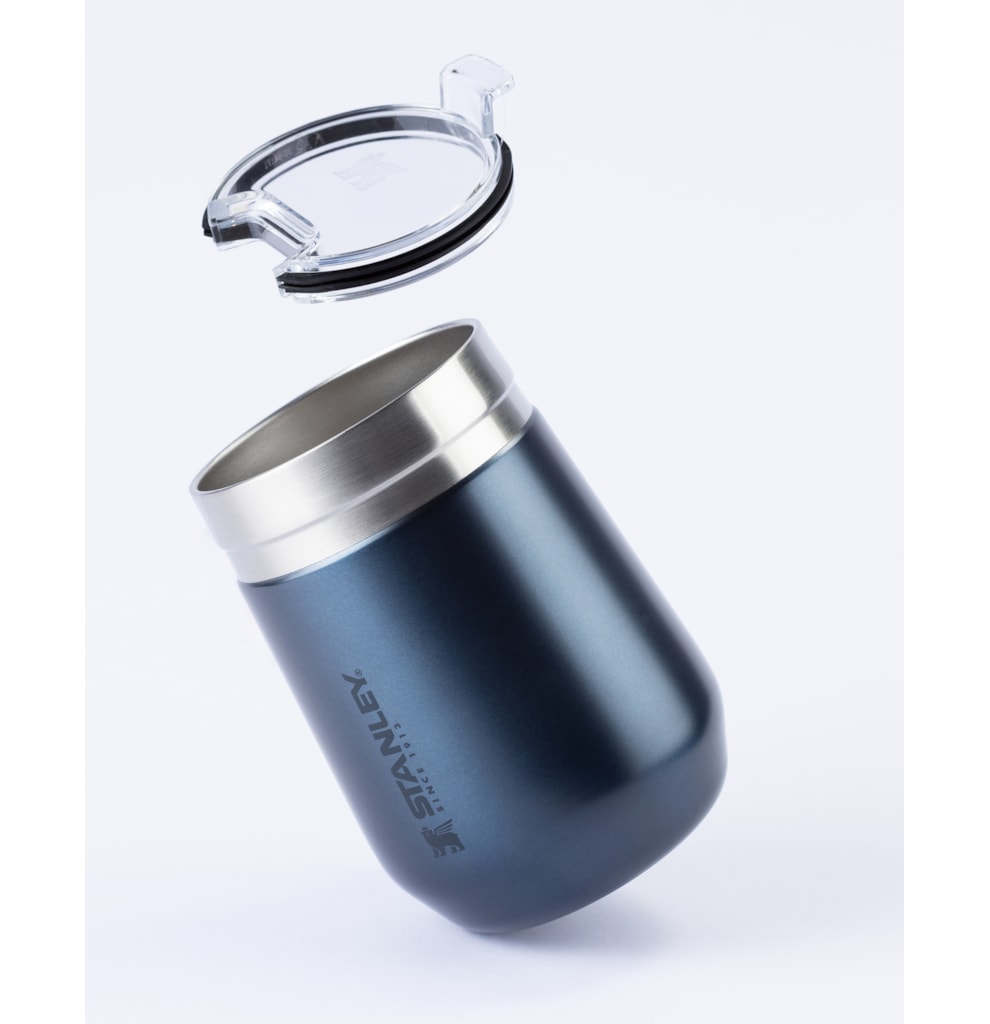 O modelo do copo térmico Stanley é ideal para brindar com um vinho, gim, drink bem refrescante, suco ou refrigerante da sua preferência, mantendo sua bebida gelada até o último gole por 5h ou até 20h, adicionando gelo.