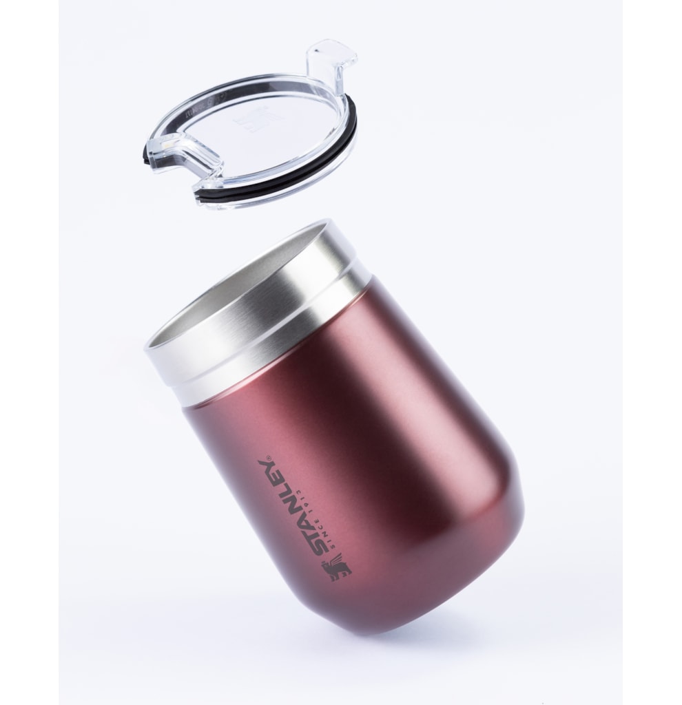 O modelo do copo térmico Stanley é ideal para brindar com um vinho, gim, drink bem refrescante, suco ou refrigerante da sua preferência, mantendo sua bebida gelada até o último gole por 5h ou até 20h, adicionando gelo.