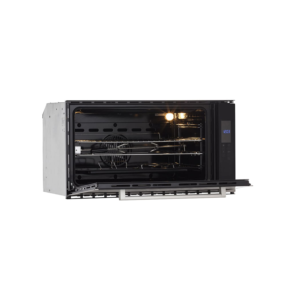 O forno elétrico 90cm Cuisinart conta com 10 funções para se adequar a qualquer tipo de preparo gourmet. Um de seus maiores diferenciais é o espaço interno de 125 litros e a programação eletrônica “início-fim” de cozimento, que permite programar o forno para que inicie e desligue automaticamente após o tempo determinado. Ainda conta com display de LED Blue Touch e espeto giratório. Projetado especialmente para ser embutido.