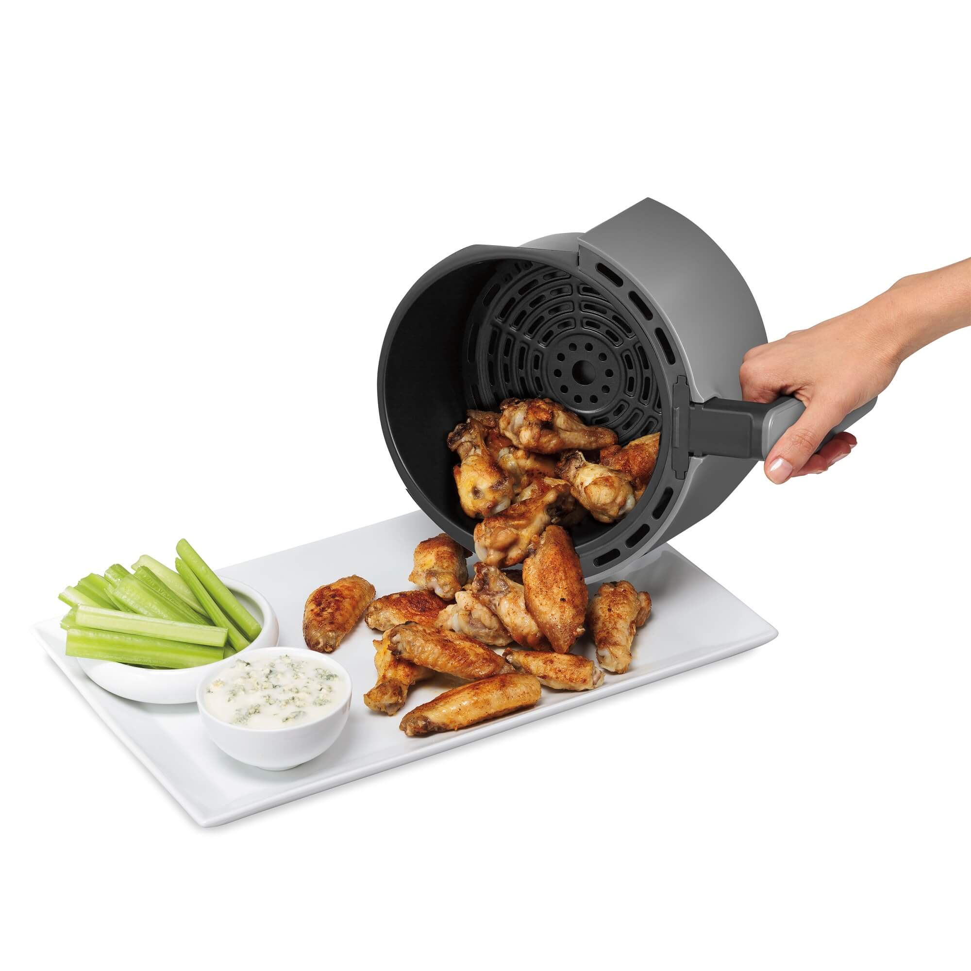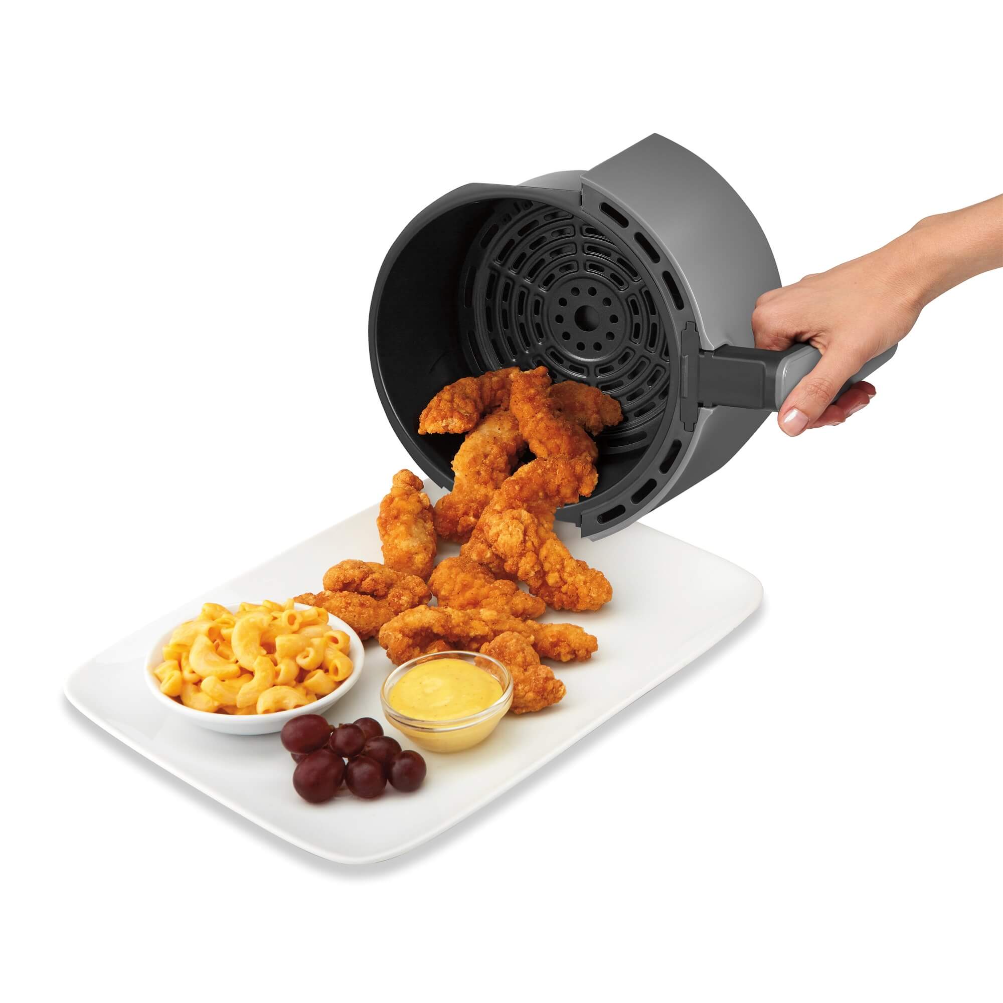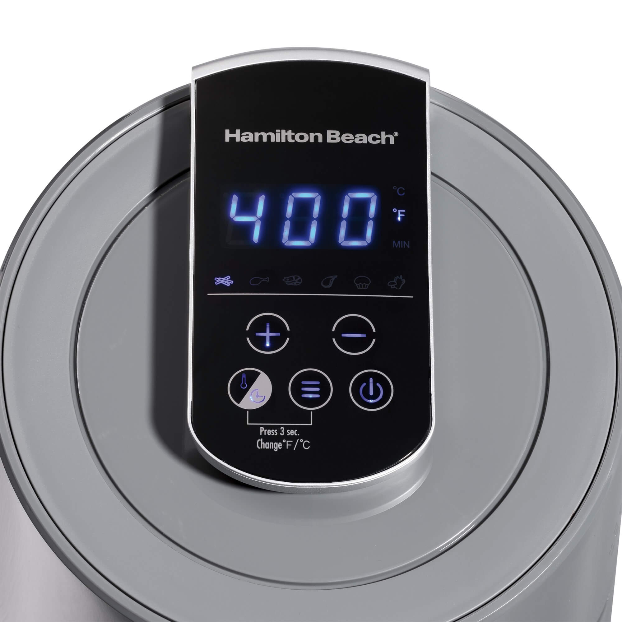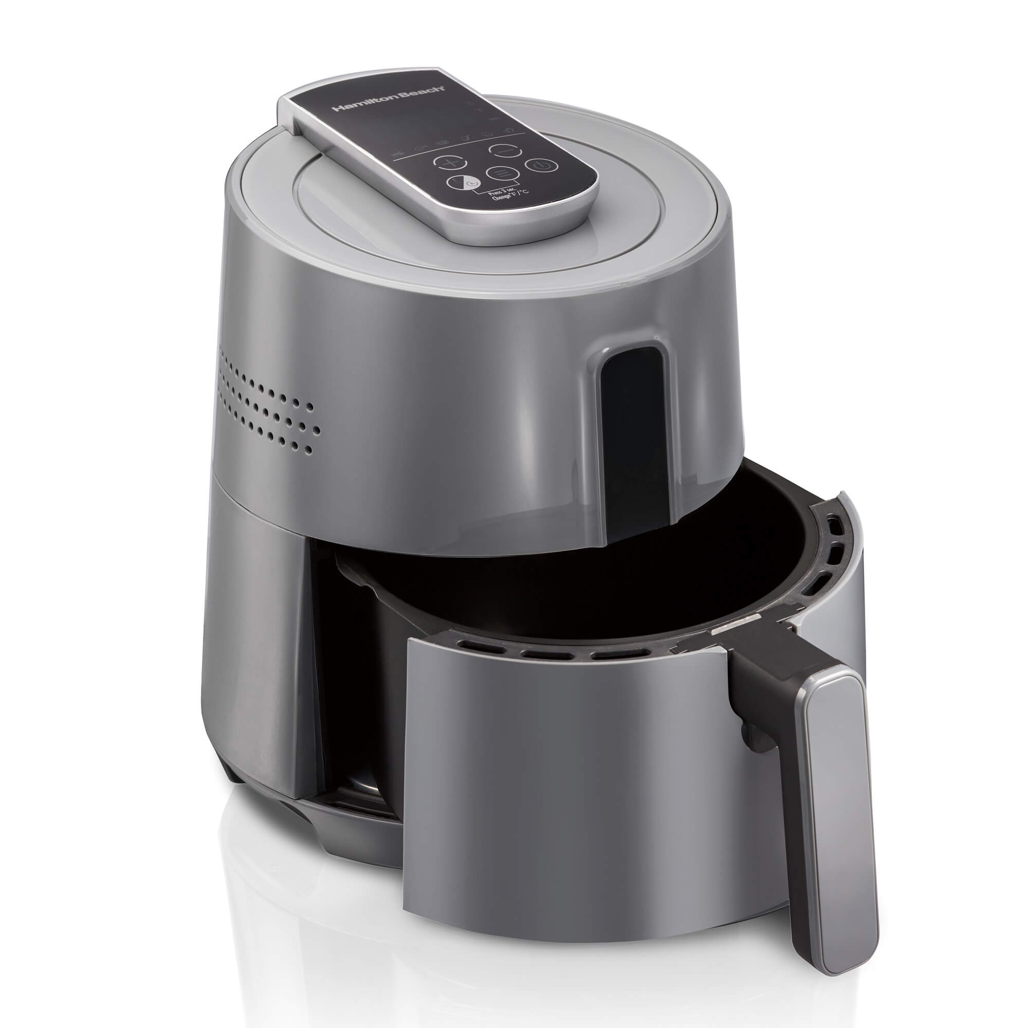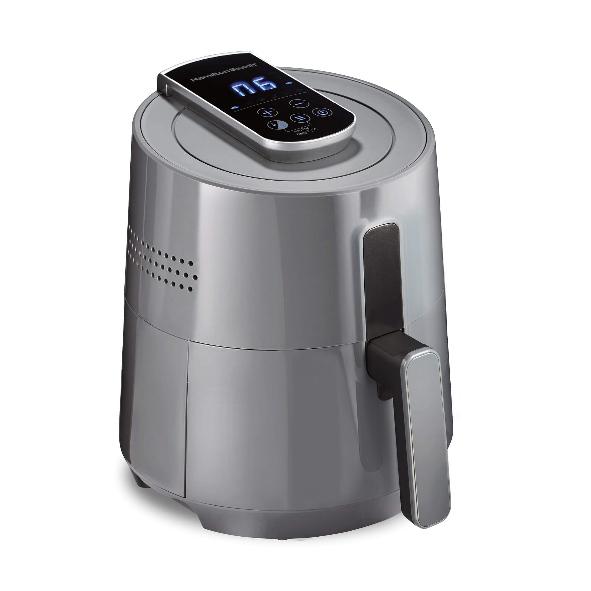Você também pode escolher o tempo e a temperatura ideal para o preparo das suas refeições. De jantares rápidos a lanches da meia noite, a Air Fryer digital da Hamilton Beach® tem a capacidade para preparar refeições para 3 pessoas.