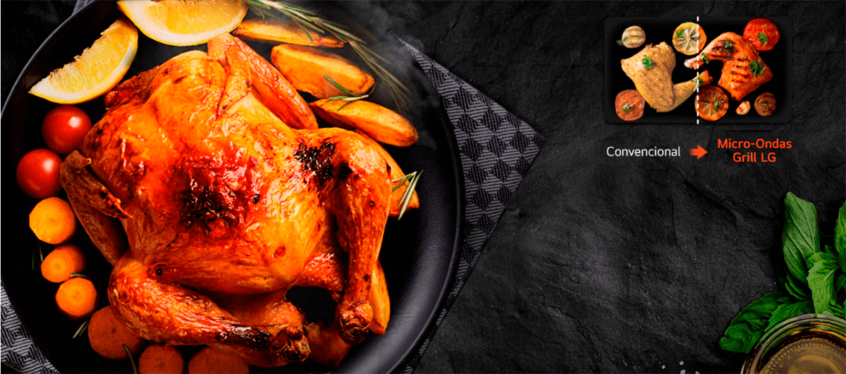 Você acha que micro-ondas é só para esquentrar o almoço e fazer pipoca? Prepare-se: Com a nova linha de Micro-Ondas Grill LG você pode dourar e gratinar diversos pratos com extrema facilidade. O diferencial da LG está no Grill de quartzo, que esquenta muito mais rápido e oferece maior segurança por ser embutido.