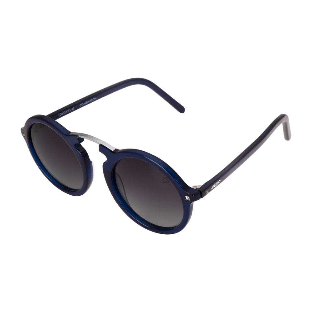 O óculos de sol azul petróleo feminino Euro é da coleção Redonditos. Ele é um modelo clássico redondo, com um toque fashion de modernidade. A armação e as hastes são de acetato polido na cor azul petróleo, com detalhe de mini spikes. A ponte (parte em cima do nariz, que lida os dois lados) é em formato em arco, dando um ar mais descolado ao produto. As lentes são polarizadas, da cor cinza degradê. As fashionistas vão amar esse modelo! Todos os óculos de sol da Euro tem o fator máximo de proteção de raios ultravioletas (UV400).