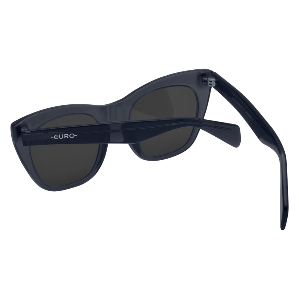 O óculos de sol fumê feminino Euro é da coleção Power Shape e o nome já diz tudo! Ele tem formato diferenciado e poderoso. A armação e as hastes são de acetato na cor fumê translúcido. Ele tem detalhes de spikes alongados na cor preta na parte frontal superior da armação, para dar um toque fashion mais ousado. As lentes são da cor azul degradé. As fashionistas vão amar esse modelo! Todos os óculos de sol da Euro tem o fator máximo de proteção de raios ultravioletas (UV400).