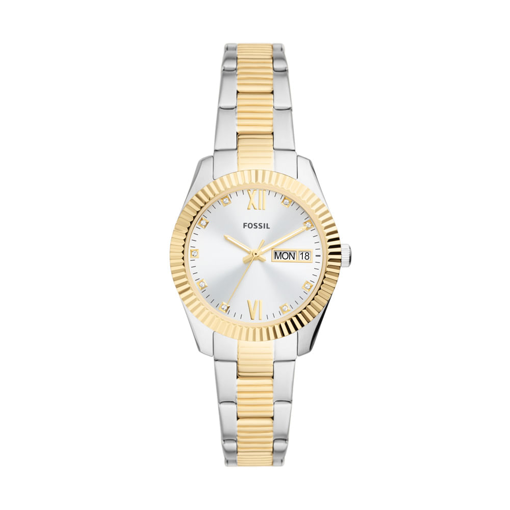 Diretamente da famosa linha Scarlette, agora podemos encontrar esses lindíssimos relógios Fossil em novos modelos. Com pulseira de aço bicolor, ele chegou pra dar um toque a mais no seu pulso! Além disso, ele apresenta um mostrador prata com detalhes em dourado e calendário na posição 3h e resistência de 5ATM.